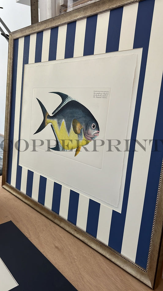 Rautenförmiger Klippfisch auf blauen breiten Streifen