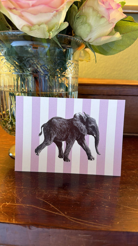 Briefkarte Elefant rosa Streifen