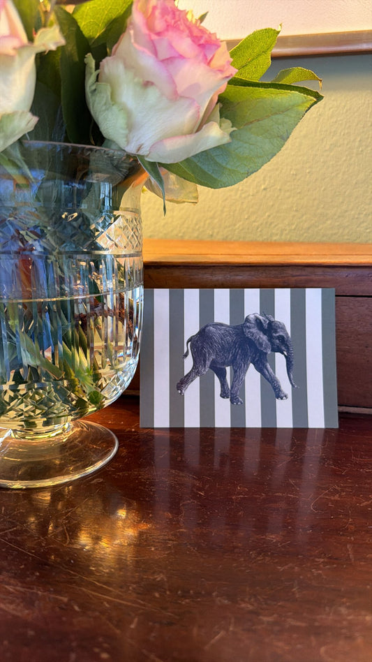 Briefkarte Elefant hellblau Streifen