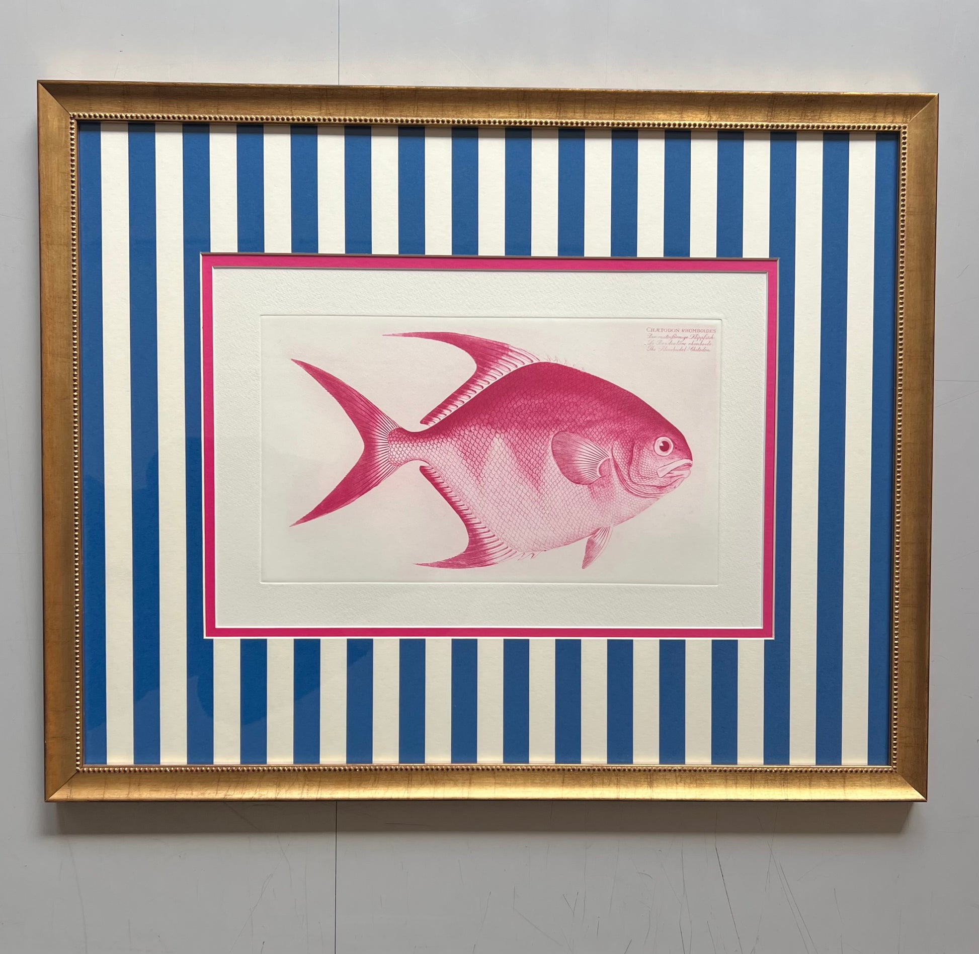 Rautenförmiger PINKER Klippfisch auf blauen Streifen
